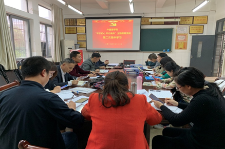 会上,党总支副书记杨虎智、英语专业一教研室党支部书记雷志斌、学生第一党支部书记陈阳分别领学了《2019年秋季学期习近平总书记在中央党校(国家行政学院)中青年干部培训班开班式上的重要讲话》及《习近平关于“不忘初心、牢记使命”重要论述选编》《习近平新时代中国特色社会主义思想学习纲要》的部分章节内容。