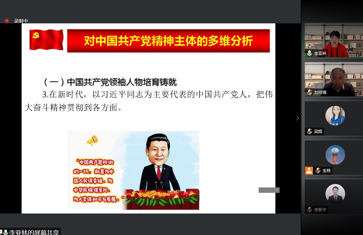 30日晚上,全体党员线上聆听了党总支书记李亚林上的“学史明理”主题党课,李亚林以《从中国共产党的精神谱系中不断汲取前行的力量》为题,从对中国共产党精神的宏观理解、对中国共产党精神主体的多维分析、中国共产党的精神谱系框架、传承和弘扬中国共产党精神四个方面,深入分析了中国共产党精神谱系的深刻内涵和时代意义。