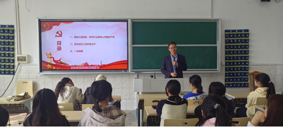 随后,戴建宇介绍了入党流程五阶段,分别是入党申请人阶段、入党积极分子阶段、发展对象阶段、预备党员阶段、正式党员阶段。并且根据《中国共产党章程》《中国共产党发展党员工作细则》和《成人有声小说 学生党员发展实施细则》,重点讲解了从入党申请人到从为入党积极分子需要努力的方向。要求全体同学响应党的号召,不辜负党和国家的期望,从身边事、从小事做起,在学习、生活和工作等方面不断努力,加强学习,严格要求自己,保持积极向上为同学们服务的初心,做同学们的表率和模范作用,为班集体和同学服务。希望大家早日积极争取成为入党积极分子,成为一名光荣的中国共产党党员,为党和人民的事业贡献更多力量。