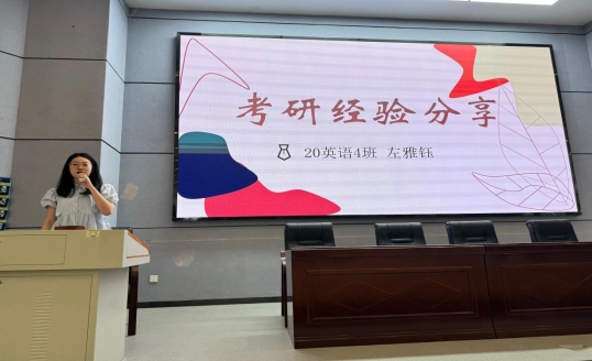 21级874英语班刘思雨同学通过结合自身的相关经历进行讲述,提倡大家多尝试、多发现、不断发展自身综合素质,倡导根据自身能力合理设立目标。并针对专四、教资等提出了有效的学习策略,强调积累与个性化备考。同时,她提醒同学们理解问题的本质,深度发展。针对自身优势,取长补短,灵活地应对挑战是解题的关键。