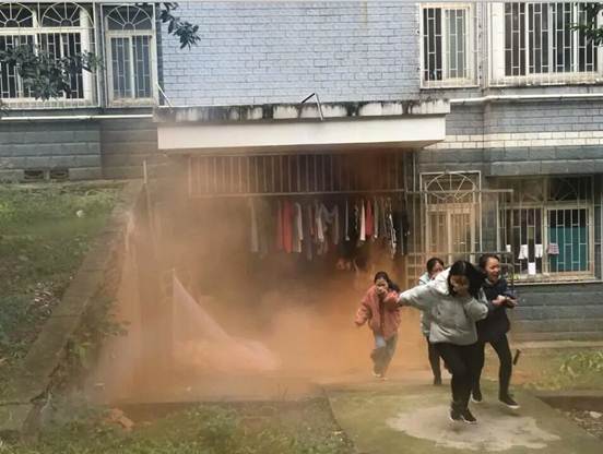 公寓楼警报器拉响时,数枚烟雾弹投放所产生的滚滚浓烟瞬间弥漫了整片宿舍区。“请广大师生马上有序紧急疏散!”指示广播播报完毕后,全体师生积极应对、迅速行动,弯着腰匍匐前进,用湿毛巾捂住鼻子、嘴巴,防止呛人的烟雾吸入肺部,在楼层工作人员的有序组织下路线依次疏散,迅速、安全地到达了指定地点。