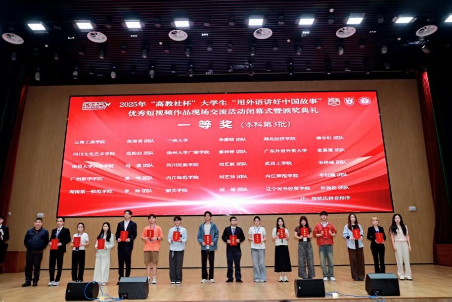 9月21日,2025年“高教社杯”大学生“用外语讲好中国故事”优秀短视频作品现场交流活动闭幕式暨颁奖典礼在武汉江汉大学圆满落幕。