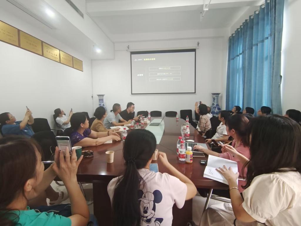 分享会上,智慧树网一流课程申报专家郑超做了题为“申报材料中可视化素材的设计与制作”专题讲座。郑超主要就一流课程申报材料中的说课和课堂实录两大块内容结合实际事例做了详细的讲解,并介绍了目前课程建设新的发展趋势,如:虚拟教研室、教育数字化、知识图谱等。分享会结束后,老师们就课程建设向与会专家咨询。最后,刘宇松做了总结发言,他代表学院感谢智慧树网专家精彩、无私的分享,希望老师们要认真吸取专家的意见和建议,做好新一轮一流课程申报与建设工作。