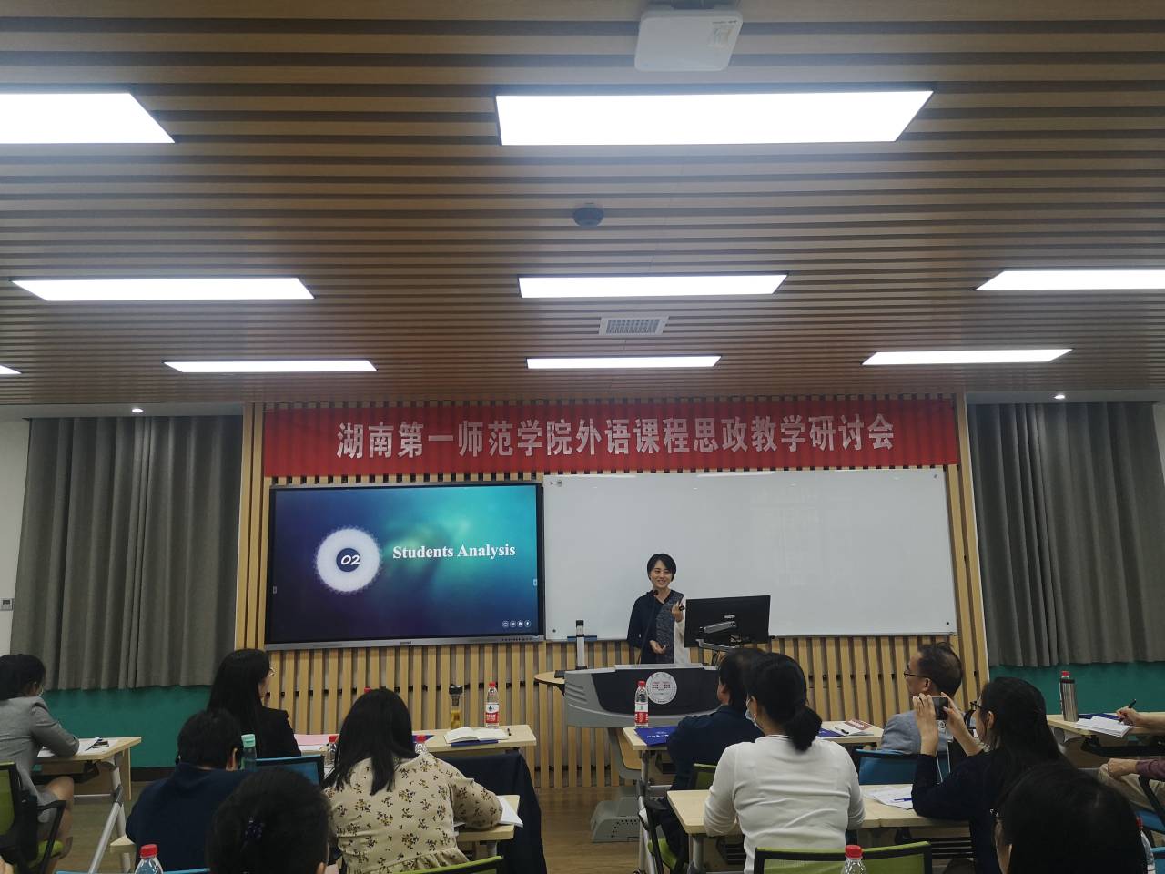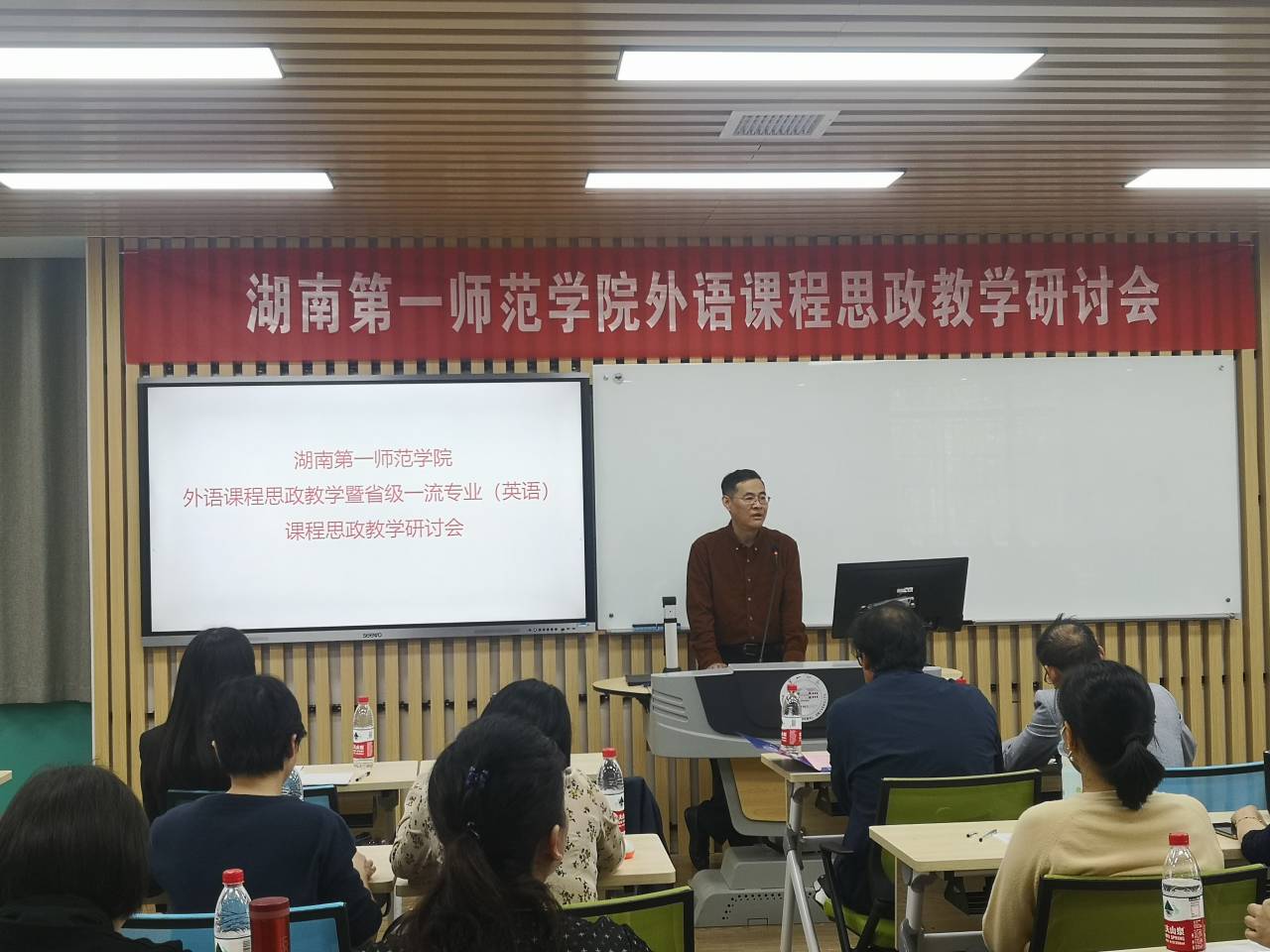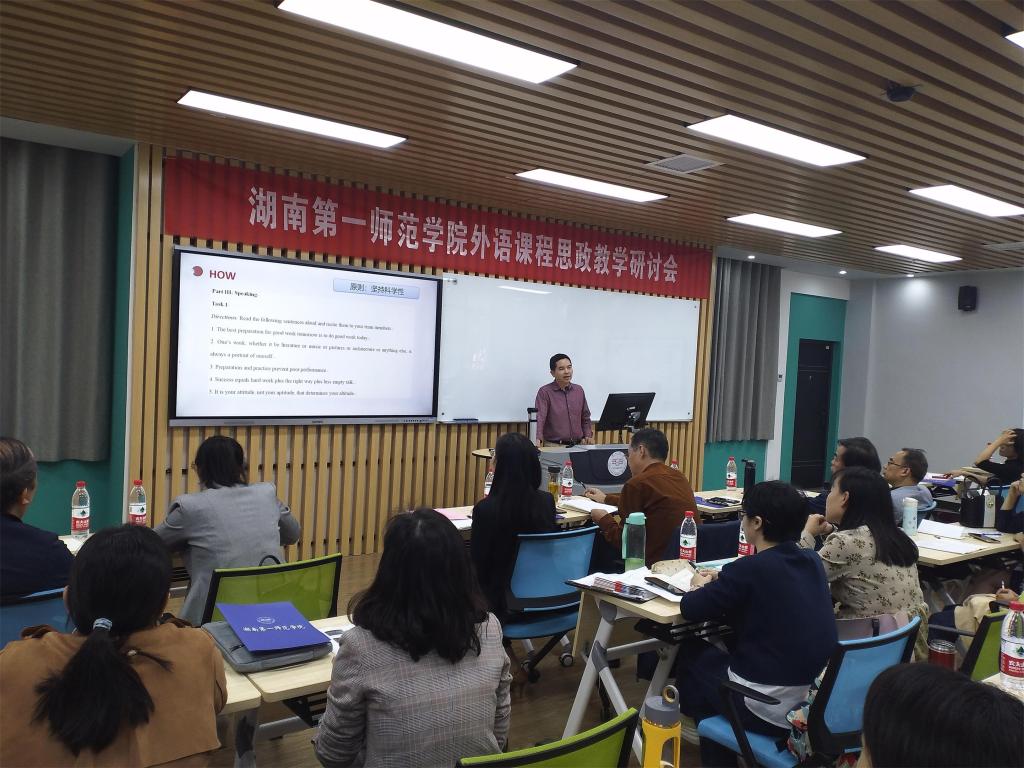 研讨会由教务处、教学评估与教师教学发展中心主办,成人有声小说 、公共外语教学部、马克思主义学院三部门联合承办。教务处处长蒋蓉、副处长唐文杰、教学评估与教师发展中心主任陈梦稀、马克思主义学院院长周小李、国际合作与交流处处长何晓斓,成人有声小说 党总支书记李亚林、院长刘祥清、副院长刘宇松、公共外语教学部主任刘明东及全体教师参加。