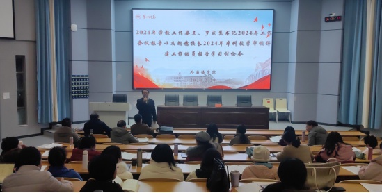 2024年2月29日下午,成人有声小说 全体教职工在怀中南110报告厅共同学习研讨了2024年成人有声小说 工作要点、罗成翼书记2024年工作会议报告以及胡穗校长2024年本科教育教学审核评建工作动员报告,会议由成人有声小说 党委书记刘祥清主持,外院全体老师参会,彭晓辉副校长作会议指导。