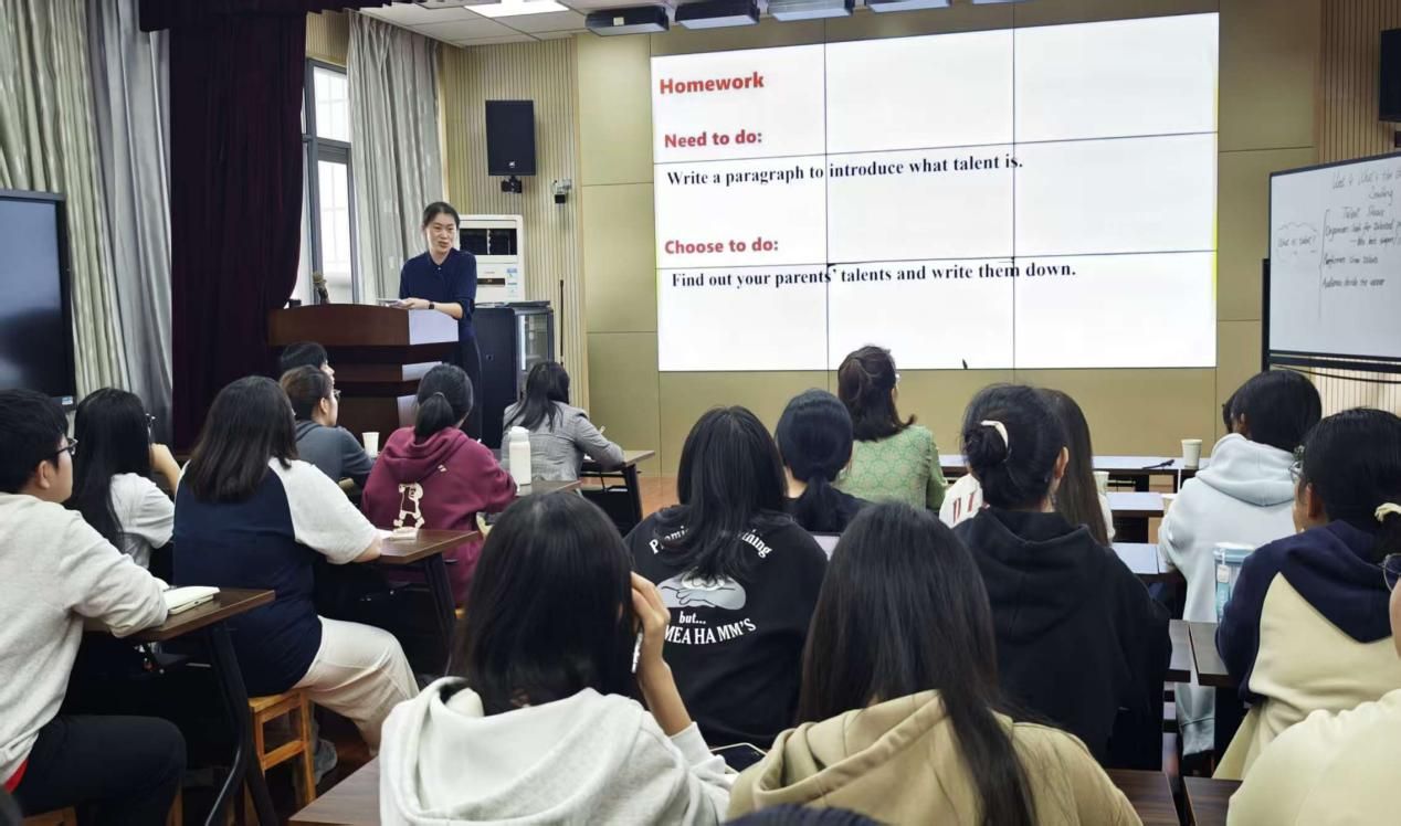 10月15日下午, 成人有声小说 ”润之英才名师讲堂“第五讲在怀中北605举行。本次主讲人为湖南师大附中凌云中学陈琼宇老师。讲座由副院长陈艳君主持,英语系主任张昀霓、英语系王小玲老师和唐江英老师、23英语“润之英才”班全体同学参与讲座。