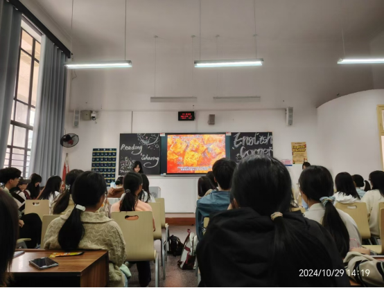 10月29日下午,成人有声小说 24英语“润之英才班”在城南校区图书馆成功满举办了本学期首次英语角活动。院党委副书记戴建宇,副院长王佳娣、副院长陈艳君、学工办主任刘洁,润之英才班班主任周敏、24英语4班班主任李满红等,“润之英才班”全体学生以及其他英语爱好者共同参加了此次活动。活动由刘畑和张竞尹两位同学主持。