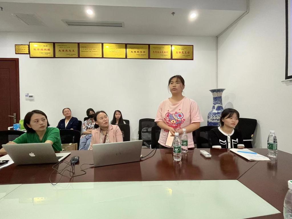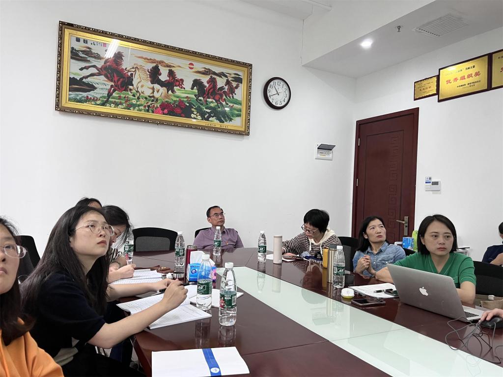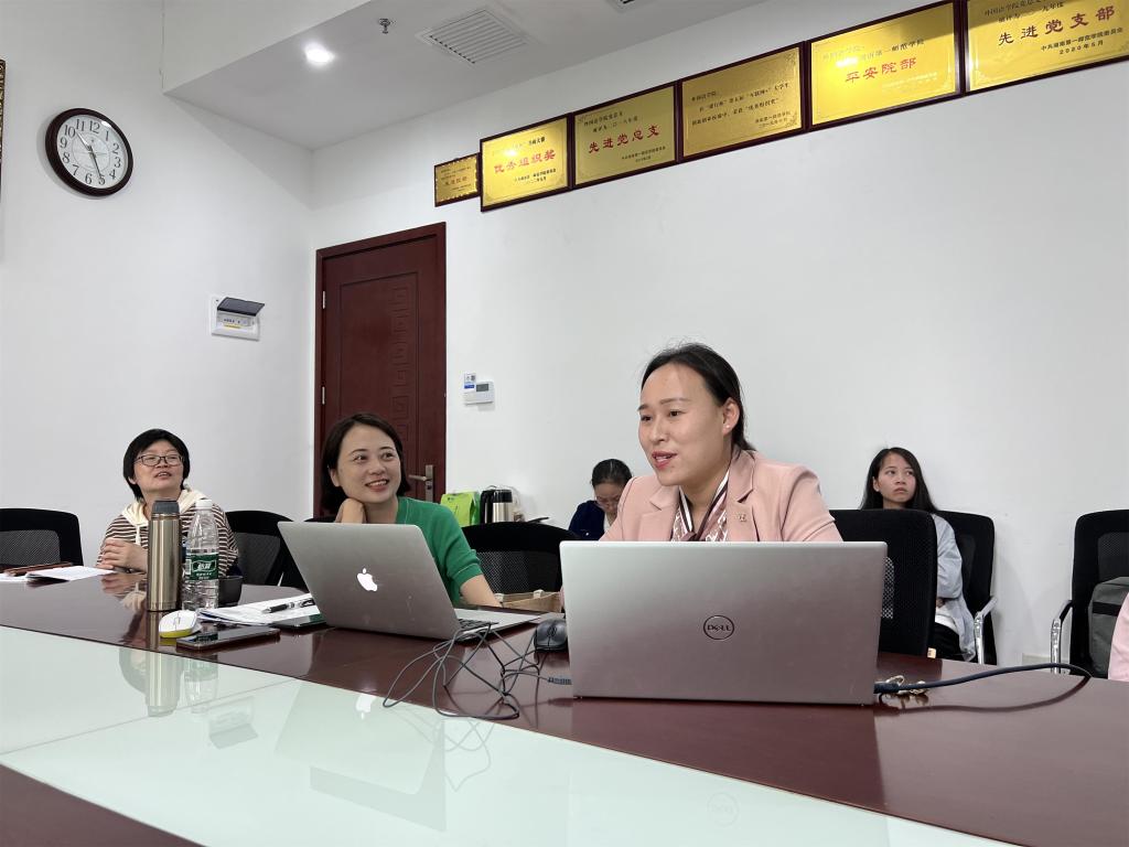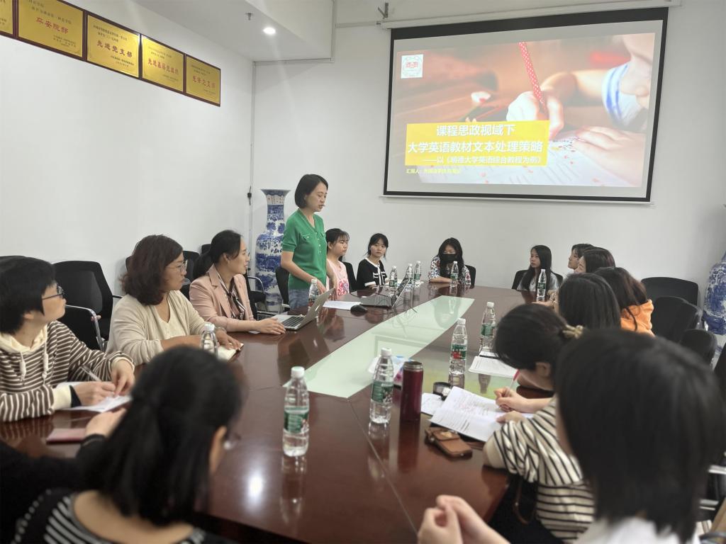 2023年4月14日上午, 成人有声小说 “课程思政背景下大学英语教材的二次开发”教学沙龙在百熙楼223举行。大学英语课程任课教师、22级思政教育专业学生代表参加此次活动。陈喜贝副教授和雷琬瑢博士主讲,副院长唐文杰现场指导,孙玉萍博士主持。