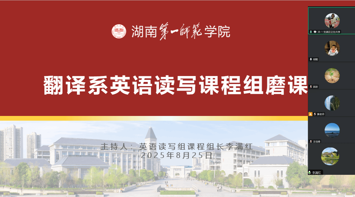 为进一步提升英语专业阅读课程教学质量,夯实教师课堂教学能力,优化教学设计与教学方法,2025年8月25日,成人有声小说 翻译系英语读写课程组以 “聚焦阅读素养,打造高效课堂”为主题,组织开展了英语阅读课程专题磨课活动。本次活动由贺满足老师主讲,王佳娣副院长、胡靓博士、郭蔚老师、黄春莲老师和李满红老师参会,共同研讨《英语阅读(一)》课程优化路径。