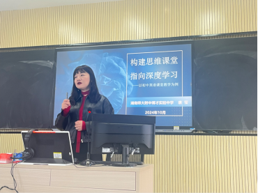 10月22日下午, 成人有声小说 “润之英才名师讲堂”系列讲座之2024-2025学年秋季学期第1讲在怀中北602开讲。本次主讲人为湖南师大附中博才实验中学副校长唐莹老师。讲座由副院长陈艳君教授主持,班主任罗海燕博士、英语系王彩虹老师、刘霞老师、22级英语“润之英才”班,23级英语“润之英才”班全体同学70余人参与讲座。
