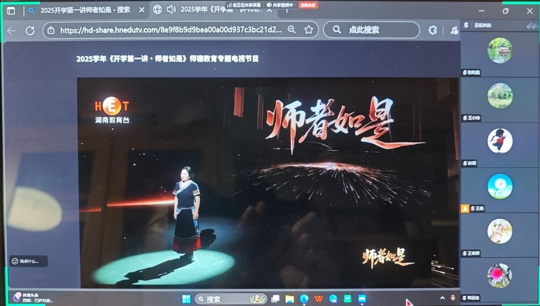 为贯彻落实教育家精神铸魂强师行动,进一步加强师德师风教育,提升教师队伍的整体水平,英语系于2025年9月1日晚组织教师通过腾讯会议集体观看、学习2025年开学第一讲《师者如是》师德教育专题节目。