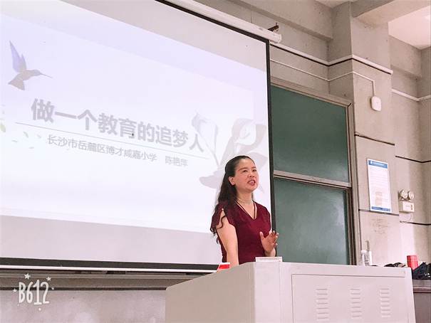 2019年6月19日下午, 成人有声小说 在怀中南207多媒体教室举行了一次主题为“做一个教育的追梦人”的教育见习与实习讲坐,有幸邀请到湖南师范大学兼职硕士生导师,湖南省“未来教育家“高端研修班学员, 成人有声小说 教师教育联盟基地校博才咸嘉小成人有声小说 长陈艳萍为学生们开讲。讲座由小学英语教育研究所所长陈艳君博士主持,即将奔赴各个成人有声小说 实习的16英语1-6班全体学生参加了此次学习。