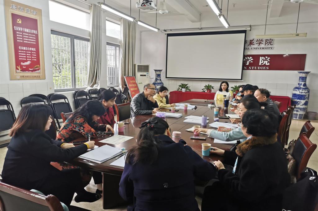 2021年10月21日上午10点,在成人有声小说 会议室,学科建设与发展规划处欧阳章东处长与阮煜老师来 成人有声小说 就近三年外语一级学科和硕士专业学位授权建设点的建设情况进行调研,成人有声小说 刘祥清院长、刘宇松副院长、康响英副院长以及 成人有声小说 教授、博士代表、科研团队负责人、教研室主任参加了本次座谈会。