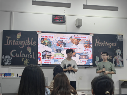 同学们在活动开始前领取了精心制作的宣传册,提前对本次活动有了初步了解。本次英语角聚焦于4种独具特色的中国非遗文化:中国麻将、苗族银饰、木偶戏和糖画。宣传册中丰富的图片和生动的文字介绍,清晰地呈现了这四大非遗文化的概要,为同学们揭开了非遗文化的神秘面纱,激发了大家对传统文化的浓厚兴趣。