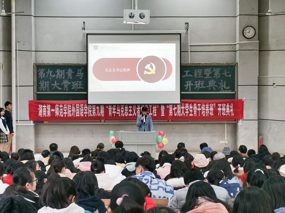 2020年11月24号,成人有声小说 在怀中南110教室举行了以“青春勇担当,服务新时代”为主题的第九期“青年马克思主义培养工程”暨“第七期大学生骨干培养班”开班典礼。活动旨在加强 成人有声小说 学生干部队伍建设,提高 成人有声小说 学生干部的理论水平、战略思维、领导能力和党性修养;同时在学生群体的思想引领工作与文化教育工作上,培养他们树立自己的人生理想,面对阻碍迎难而上,勇于担当的精神品质。参加此次培训人员共175人,党总支书记李亚林、党总支副书记杨虎智、团总支书记张明、学工办主任陈阳老师以及全体辅导员受邀出席典礼。